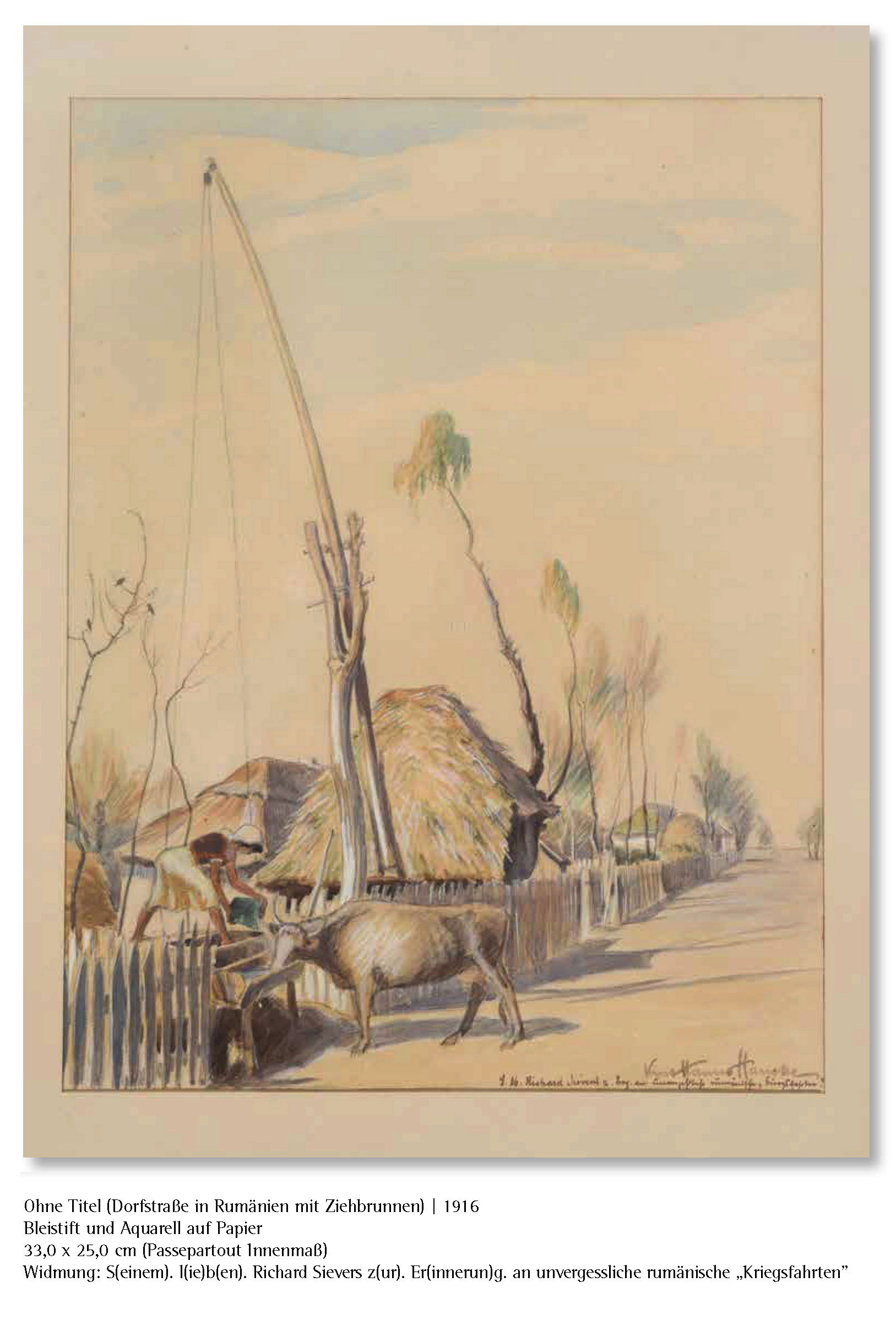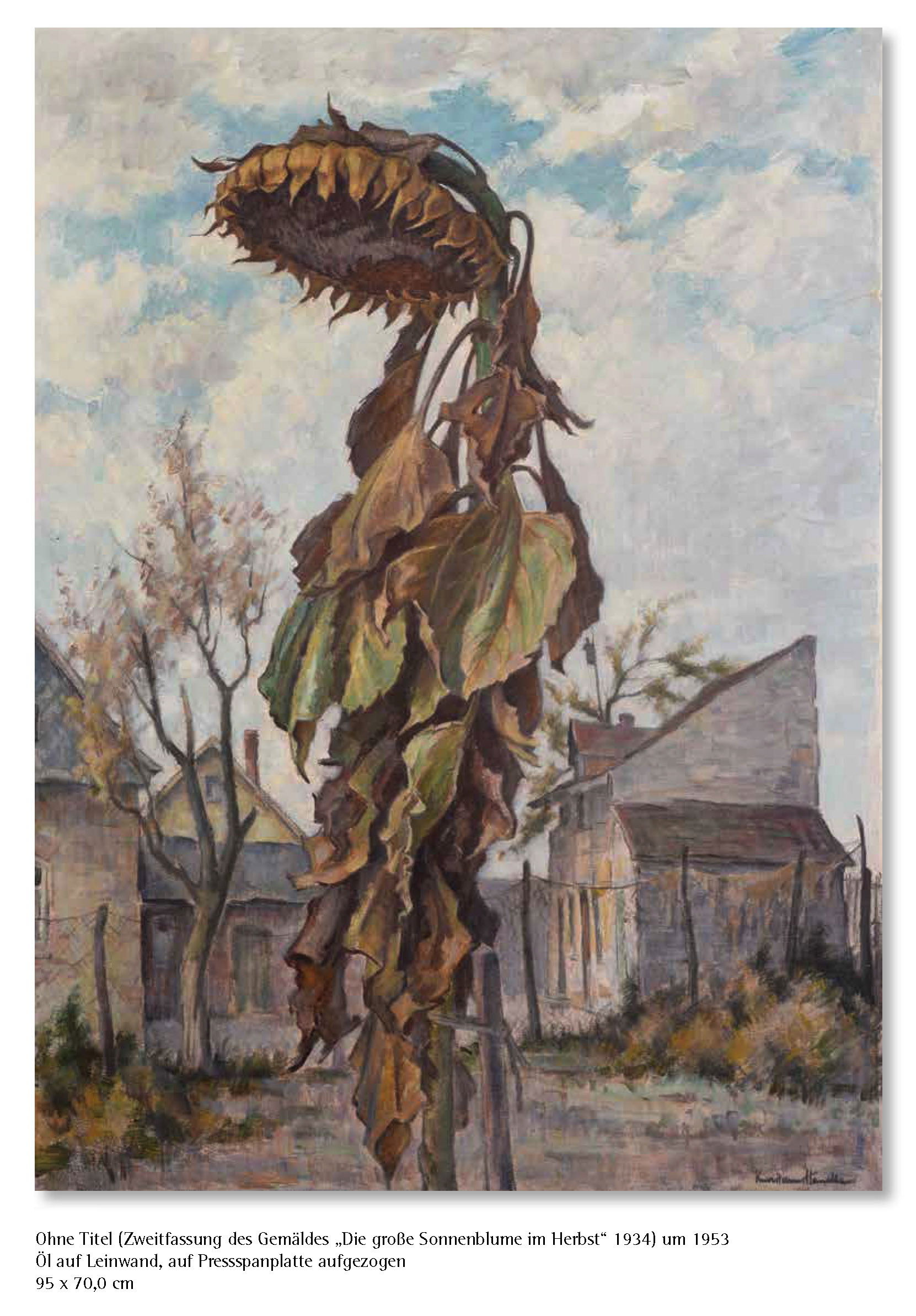 Hancke, der seinem kunstinteressierten Freund schon während des Ersten Weltkriegs einige Studien gewidmet hatte, brachte ihm als Gastgeschenk neuere Arbeiten aus seinem Weimarer Atelier mit. So gelangte im Juni 1953 eine Zweitfassung seines Gemäldes "Sonnenblume im Herbst" aus dem Jahre 1934, das sich bereits im Erfurter Angermuseum befand, "ohne Rahmen" nach Hamburg, - der Künstler hatte seinen Reisekoffer so präparieren lassen, dass er in einem verborgenen Fach unbemerkt eine ungerahmte, bemalte Leinwand über die innerdeutsche Grenze in die Bundesrepublik Deutschland bringen konnte. In Hamburg überreichte er seinem Freund das Geschenk mit dem Hinweis, die Erstfassung des Gemäldes sei 1936 zur Ausstellung im "Haus der deutschen Kunst" in München angenommen worden; doch sei Adolf Hitler, der "traditionell den ersten Rundgang durch die Ausstellung ... gemacht" habe, vor der "Sonnenblume" stehen geblieben und habe geäußert: "Das Bild ist lebensverneinend! Es wird abgehängt!" Ironisch habe Hancke, der mit seinem Freund während der NS-Zeit häufig sarkastische "Witze" über Adolf Hitler machte, hinzugefügt, er hoffe, dass der Empfänger "beim täglichen Anblick der Blume nicht seine Lebensfreude einbüße". Doch Richard Sievers war "stolz" auf dieses Gemälde, das "Herr Hitler als `lebensverneinend´" von der Ausstellung ausgeschlossen hatte, und betonte, im Gegenteil "sehr glücklich - dankbar" über dieses unerwartete Geschenk zu sein. Neben der "Sonnenblume" schenkte Hancke seinem Freund im Laufe ihrer fünfzigjährigen Freundschaft zehn weitere Arbeiten, unter ihnen zwei, 1916 in Rumänien entstandene, Aquarelle. Eines davon, die "Rumänische Dorfstraße", widmete Hancke seinem Freund in Erinnerung an die gemeinsam unternommenen rumänischen "Kriegsfahrten". Daneben gelangten eine Zeichnung der "Silberdisteln", die Frontalfassung der Burgruine Wellheim in Franken und mehrere Thüringer und Alpen- Landschaften aus verschiedenen Perioden seines Schaffens in den Besitz des Freundes. Nach dessen Tod gingen elf Werke des Künstlers in den Besitz seines einzigen Sohnes Horst-Dieter Sievers über. Horst-Dieter Sievers (1928-2023) war Schauspieler, hatte im Wuppertaler Ensemble unter der Leitung von Gustav Gründgens seine ersten Bühnenerfolge in klassischen Rollen und gastierte danach an großen Bühnen, darunter am Wiener Burgtheater. Den Künstler Kurt Hanns Hancke lernte er im letzten Lebensjahr seines Vaters (1965) in Weimar kennen. Anlässlich des Gastspiels seines Ensembles am Deutschen Nationaltheater nahm er persönlich Kontakt zum Künstler auf und verbrachte mit ihm einen Tag in der Klassikerstadt, wo ihm Hancke neben Sehenswürdigkeiten der Stadt auch seine Werke in öffentlichen Gebäuden zeigte, - ein für Sievers "unvergessliches Erlebnis". Nach dem Tod seines Vaters setzte Horst-Dieter Sievers den Briefwechsel mit dem Künstler fort und chauffierte ihn auch durch den Schwarzwald, als Hancke mit seiner Frau die Witwe seines Freundes während ihres Kuraufenthaltes in Bad Wildbad besuchte.